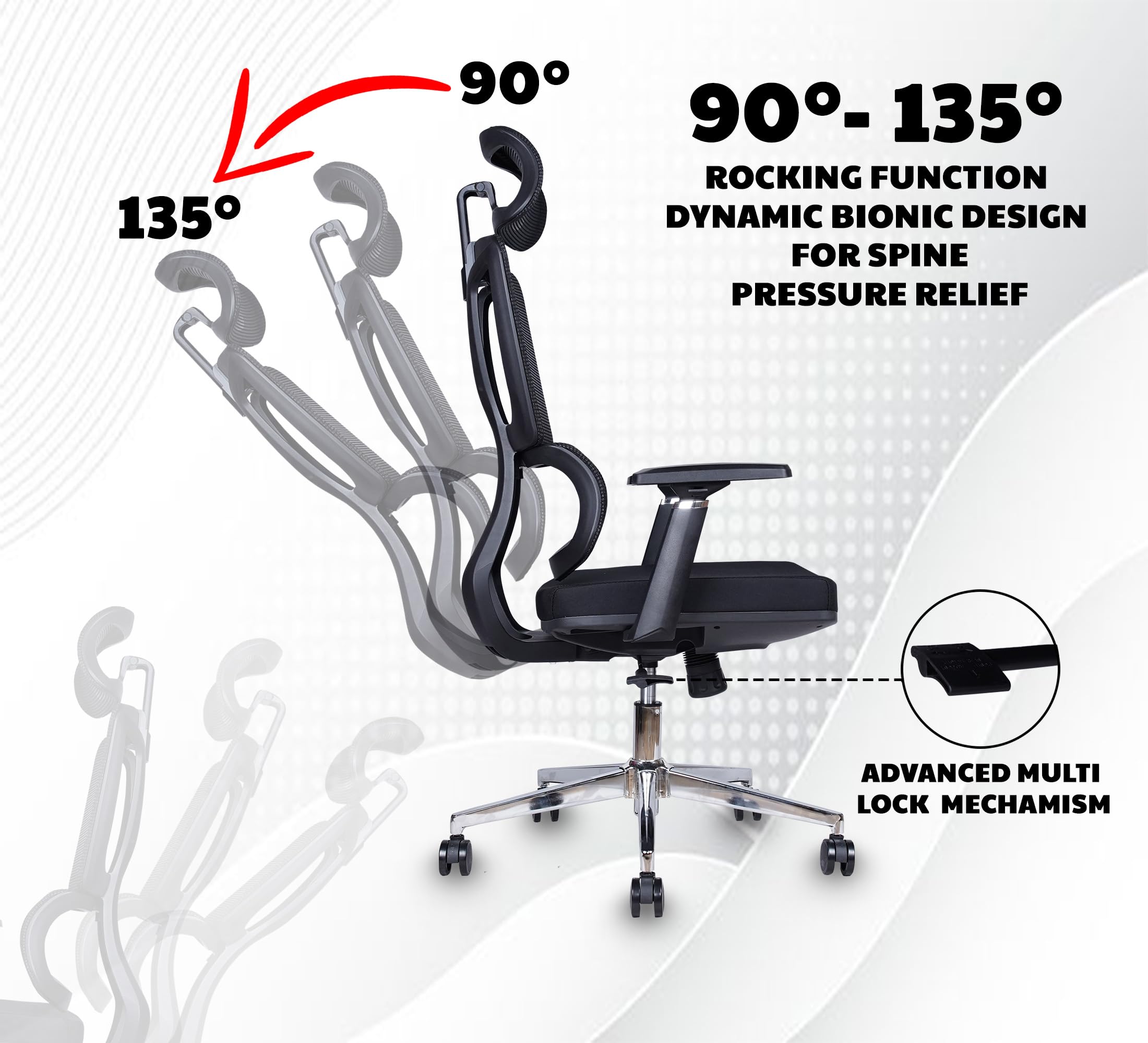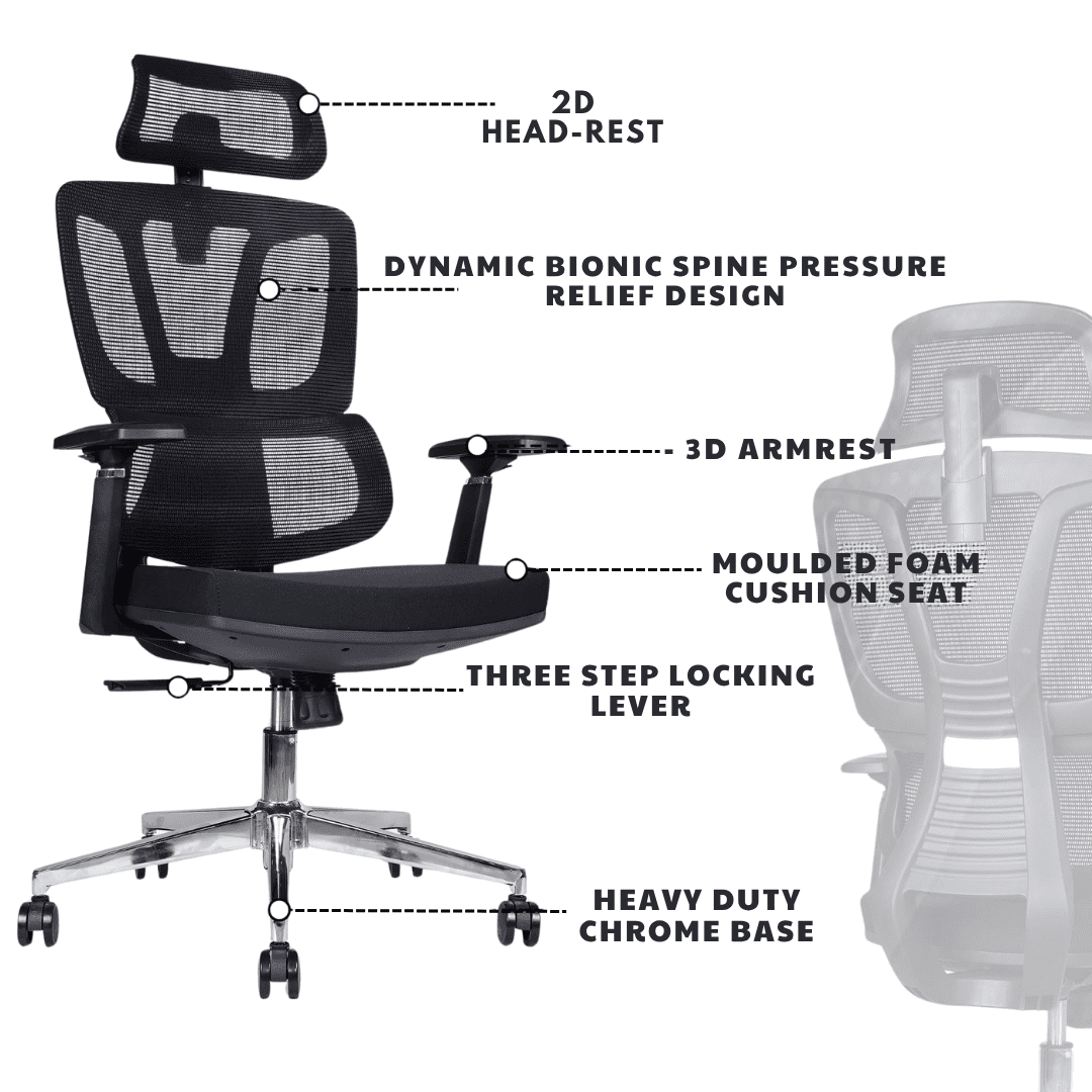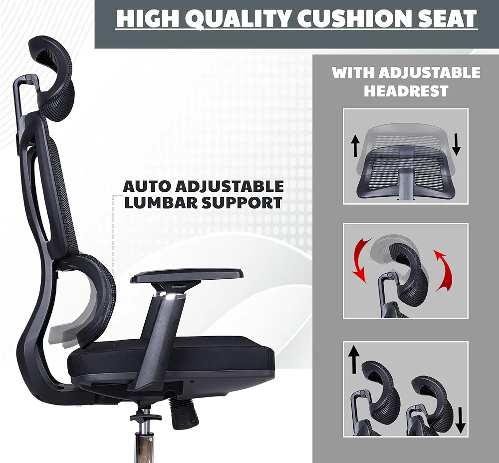 Ergonomic Mesh High Back Office Chair With Adjustable Lumbar Support, 3D Armrests, Multi-Tilt Lock Mechanism & Strong Chrome Base