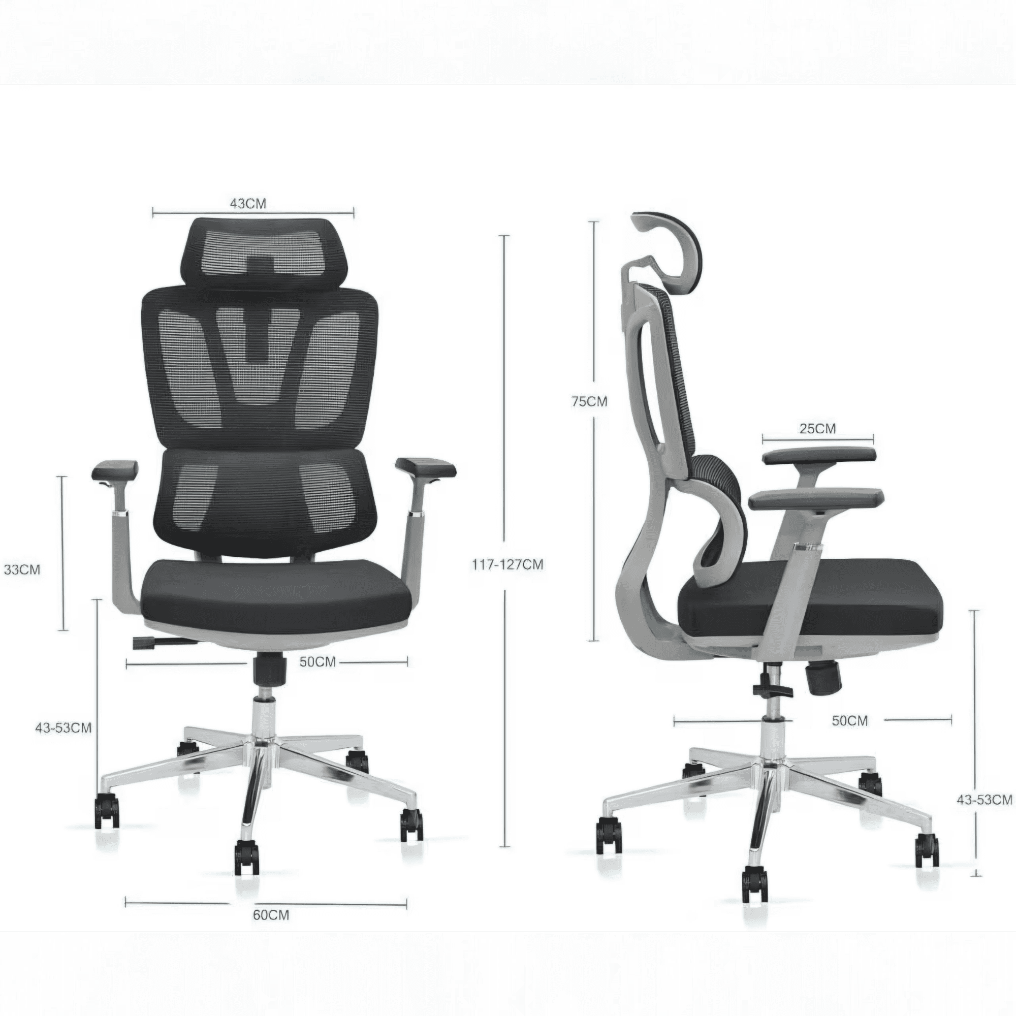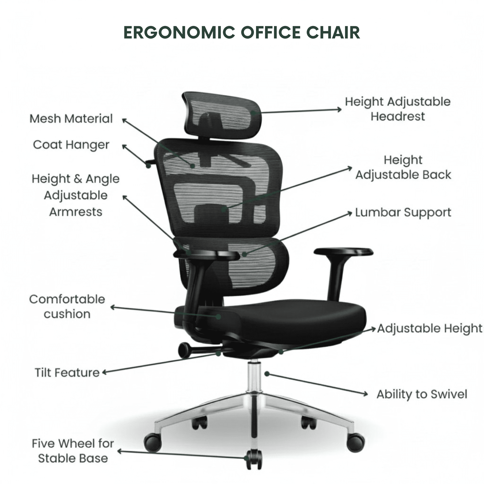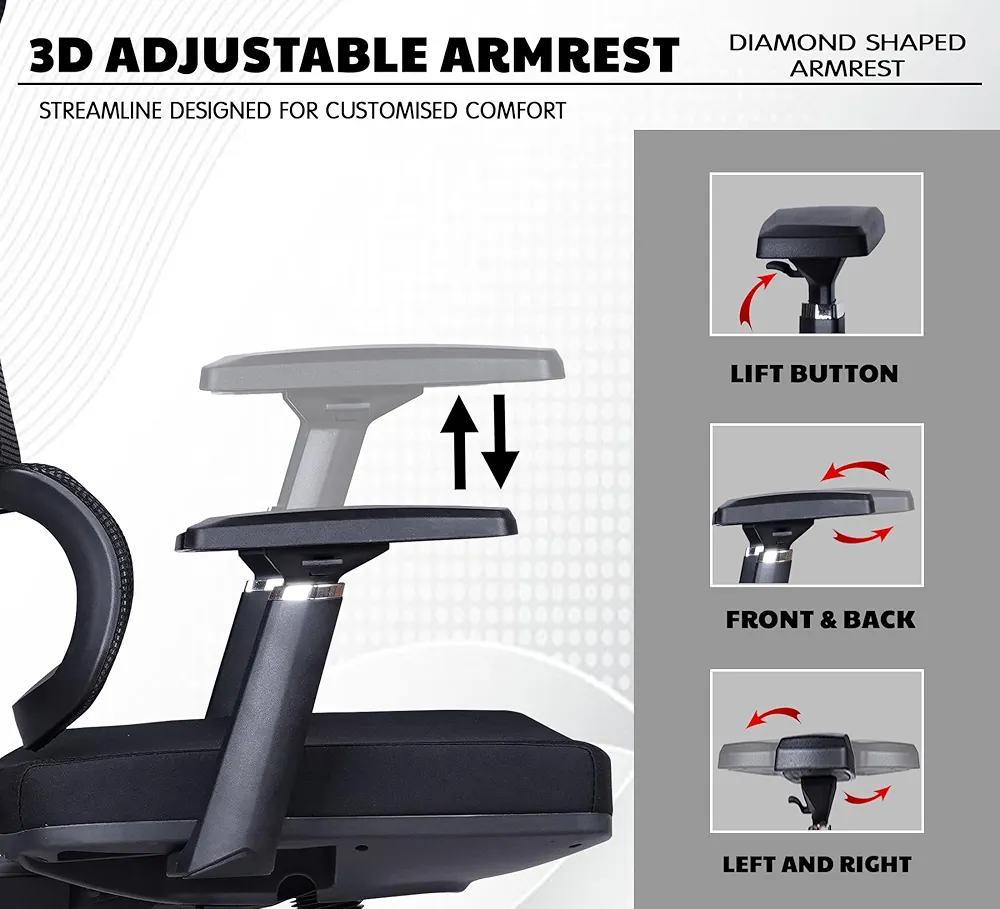Ergonomic Mesh High Back Office Chair With Adjustable Lumbar Support, 3D Armrests, Multi-Tilt Lock Mechanism & Strong Chrome Base