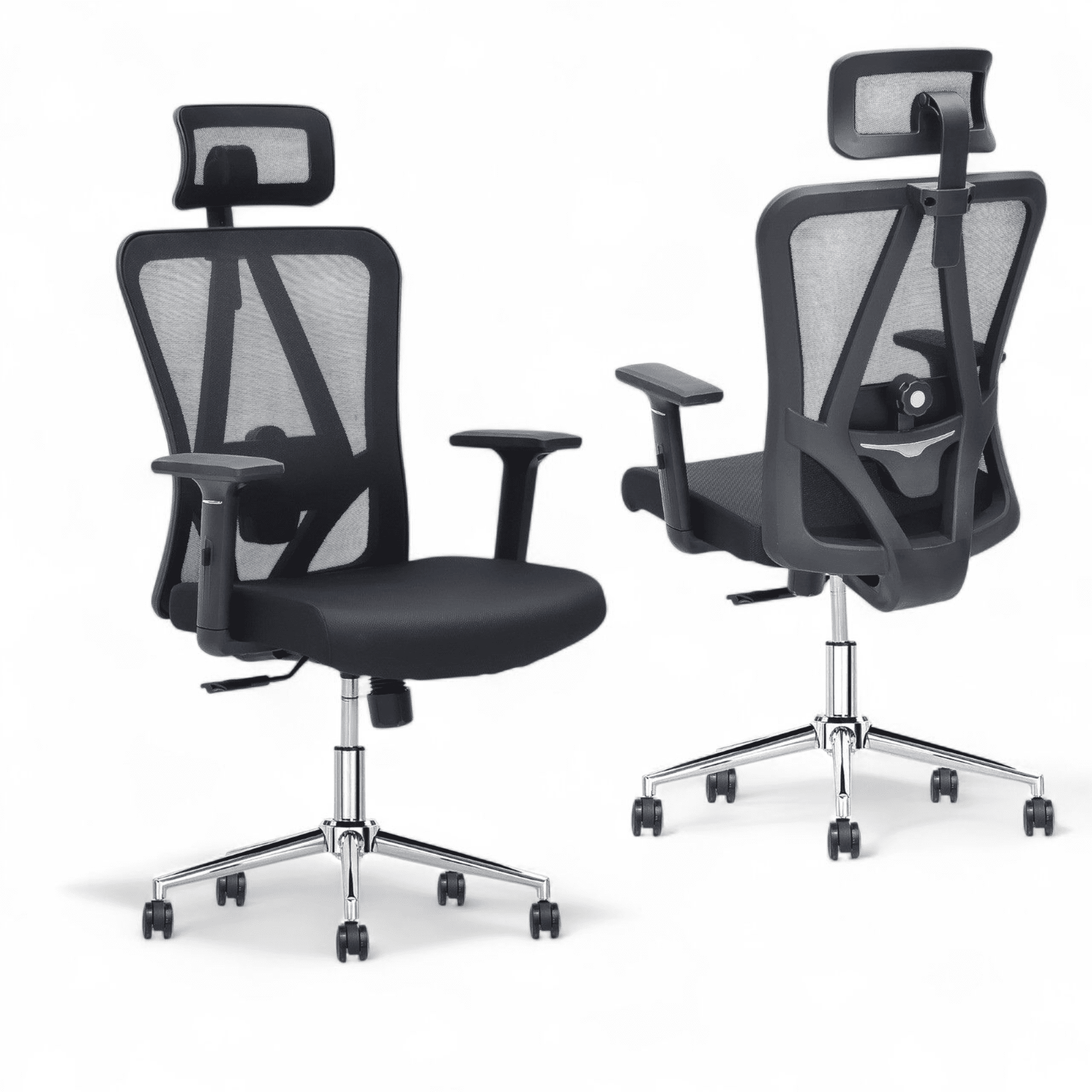 The integrated lumbar support and adjustable headrest ensure proper spinal alignment, reducing neck and back strain. Equipped with a high-density padded seat and a robust chrome-plated swivel base, this chair offers both durability and effortless mobility for any professional or home office environment.