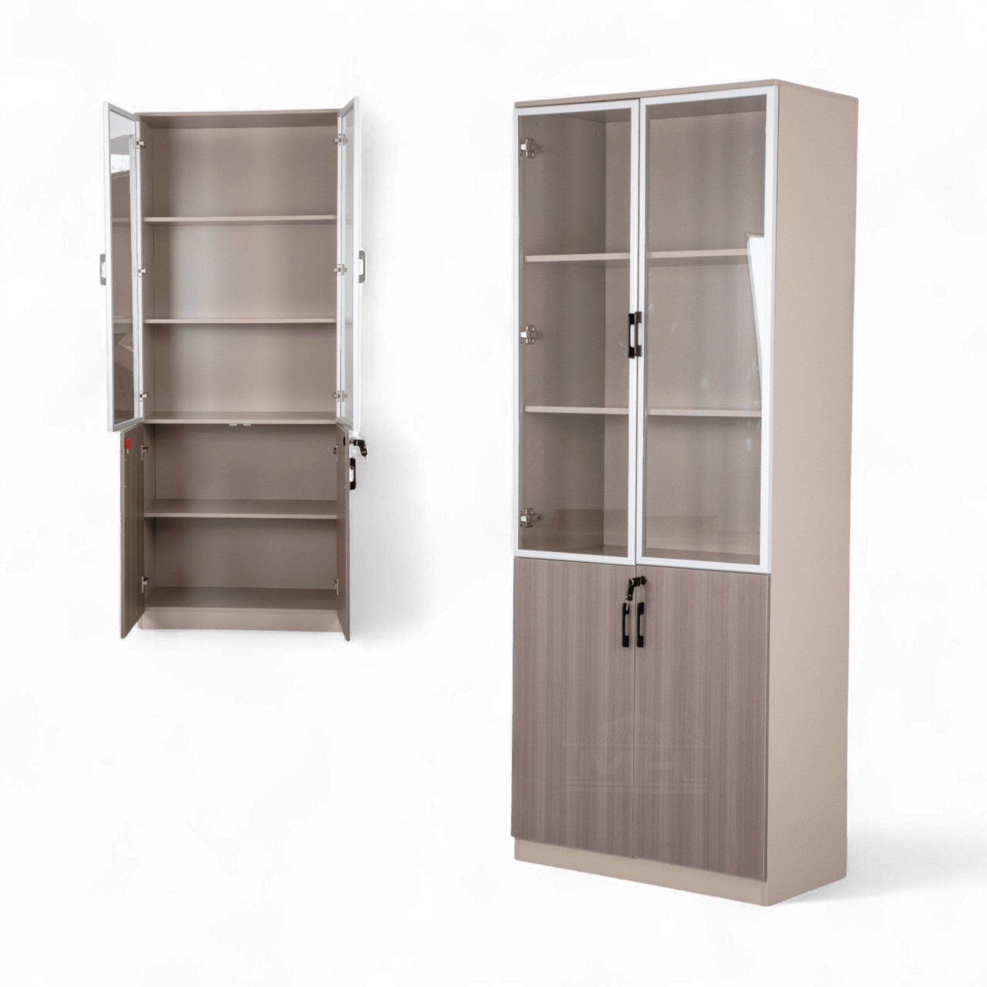Upgrade your workspace with the 2513 2D Office Cabinet, a perfect blend of elegance and functionality. Designed for professionals who value organization and style, this tall storage unit features a dual-compartment design that caters to both display and secure storage needs.