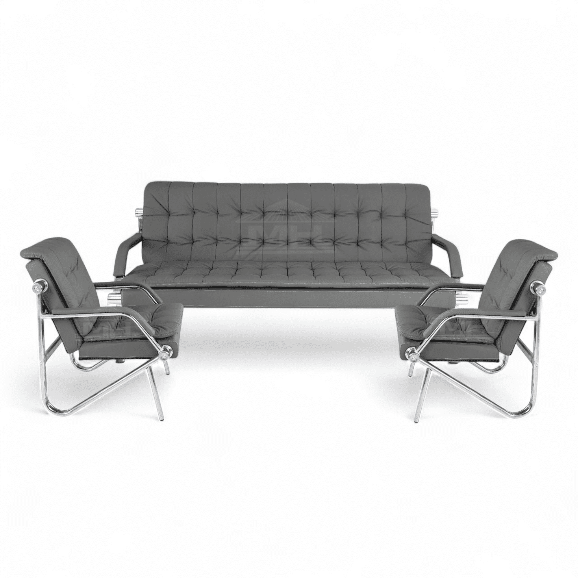 Modern 3-Piece Executive Office Sofa Set – Grey Tufted Design